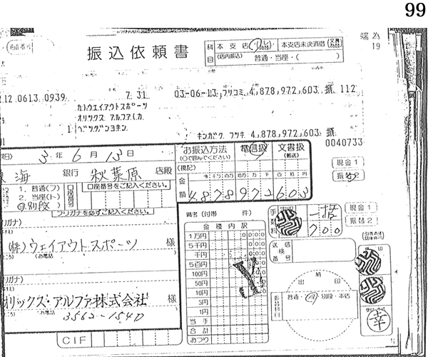 そもそもオリックスアルファ(株)は、今まで立証したように取引相手が東海銀行であり、(株)ウェイアウトスポーツではないのであり、取引相手でもない(株)ウェイアウトスポーツに対してオリックスアルファ(株)は絶対に約50億円とする巨額な送金はできないのである。