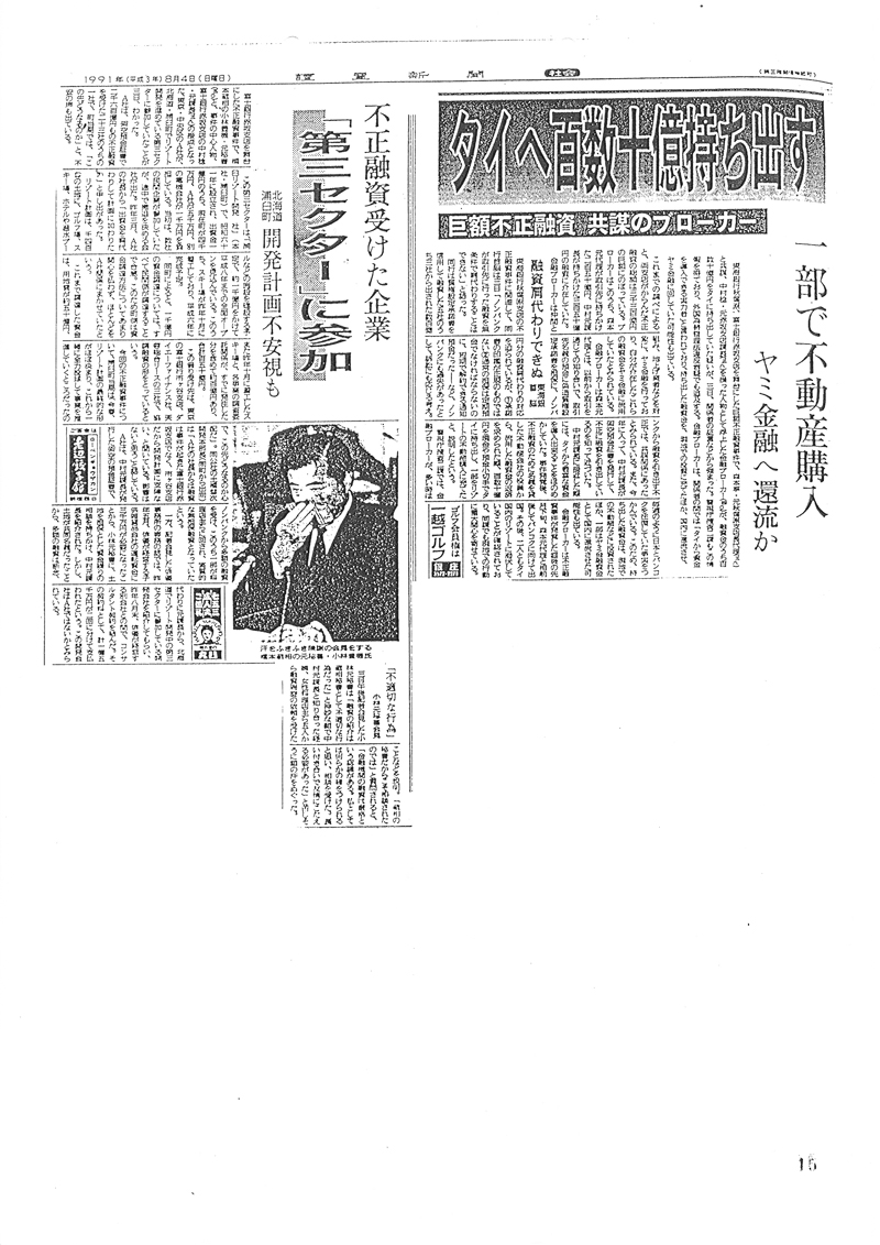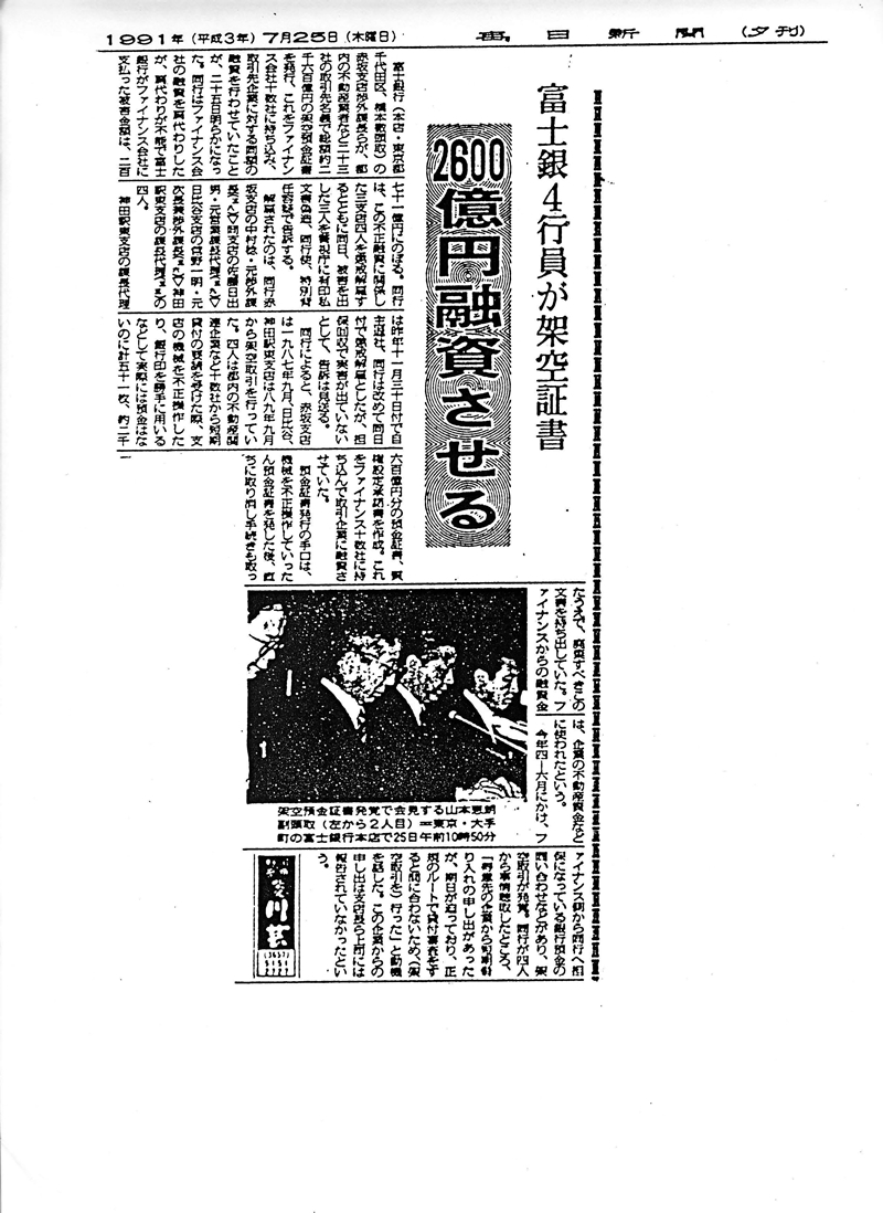 新聞をはじめとする報道機関は何を証拠にこのような非常識な報道ができるのか、大手都市銀行は「架空証書」で2600億円という巨額の不正融資が何年間も「個人の銀行員」によって継続できるような銀行の経営体系ではないのである。何のために各法律、規則、規約に即した大蔵省(現財務省)銀行局(現在は、内閣府金融庁が管轄)各銀行内部の監督、監査等があるのだが、その実態はどうなっているのか。