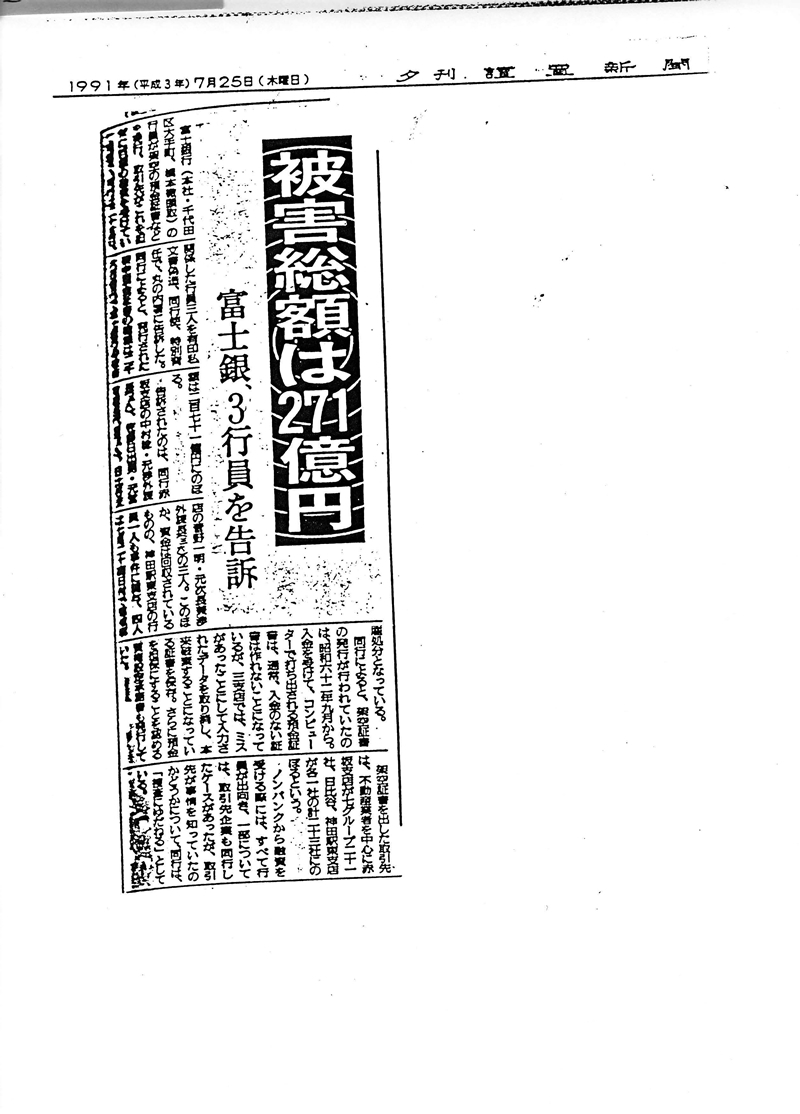 何故、銀行が平成3年7月25日からマスコミ報道で大手都市銀行3行が同時期同様の「巨額不正融資事件」として「発覚」を発表しなければならいのか、非常に不自然なのである。そして「告訴状」による刑事手続を同時に発表することが何を目的としたのかである。