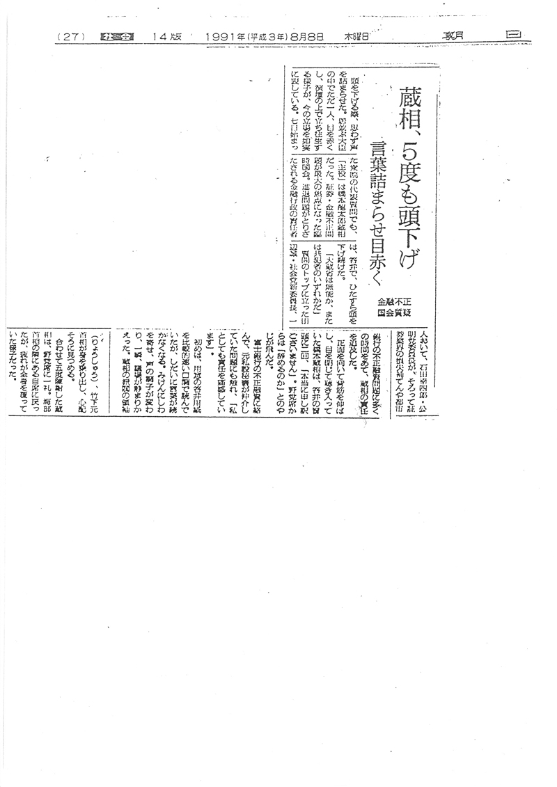 冤罪の多くがそうであったように、この巨額融資事件においても捜査機関によるマスコミ操作が存在した証左となった新聞報道である。