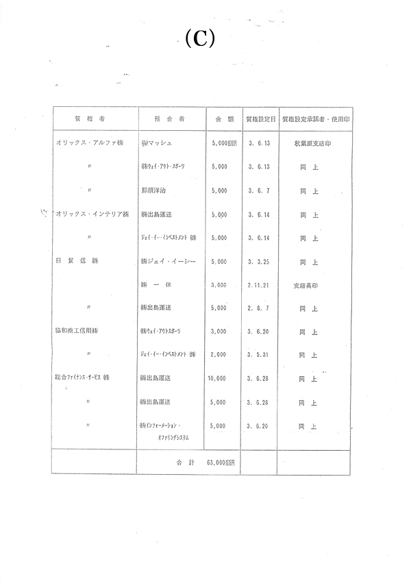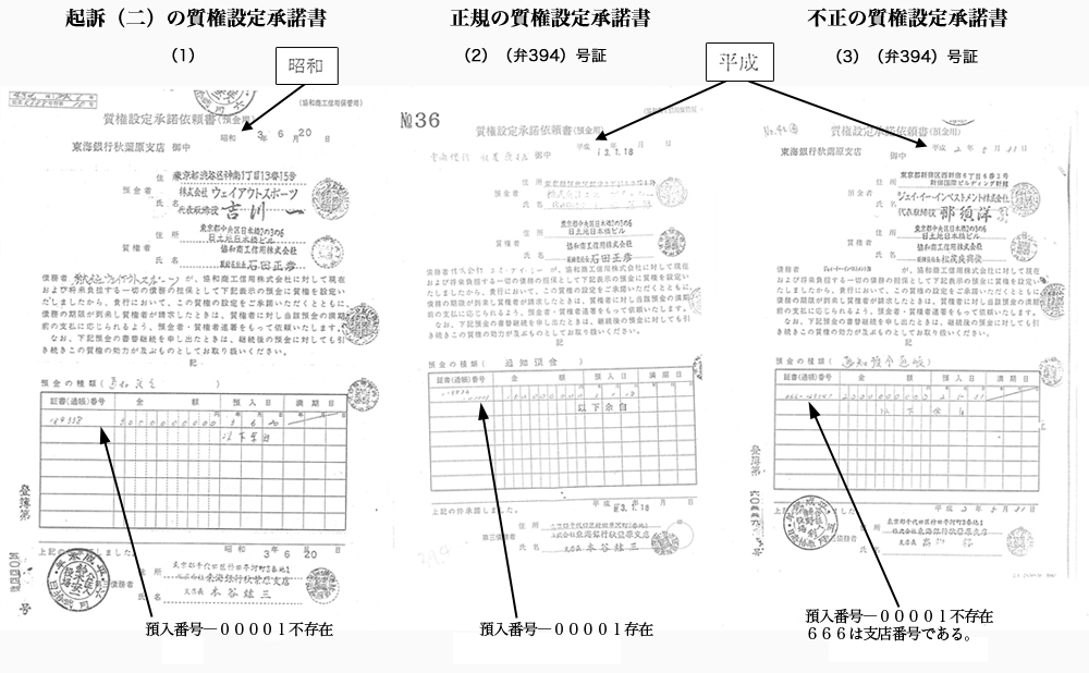 この本来であれば、(A)質権者が東海銀行であるのに「質権者オリックスアルファ(株)」のコピー偽造の「スリ替え」の事実を後に客観的諸証拠で詳細に証明するものである。