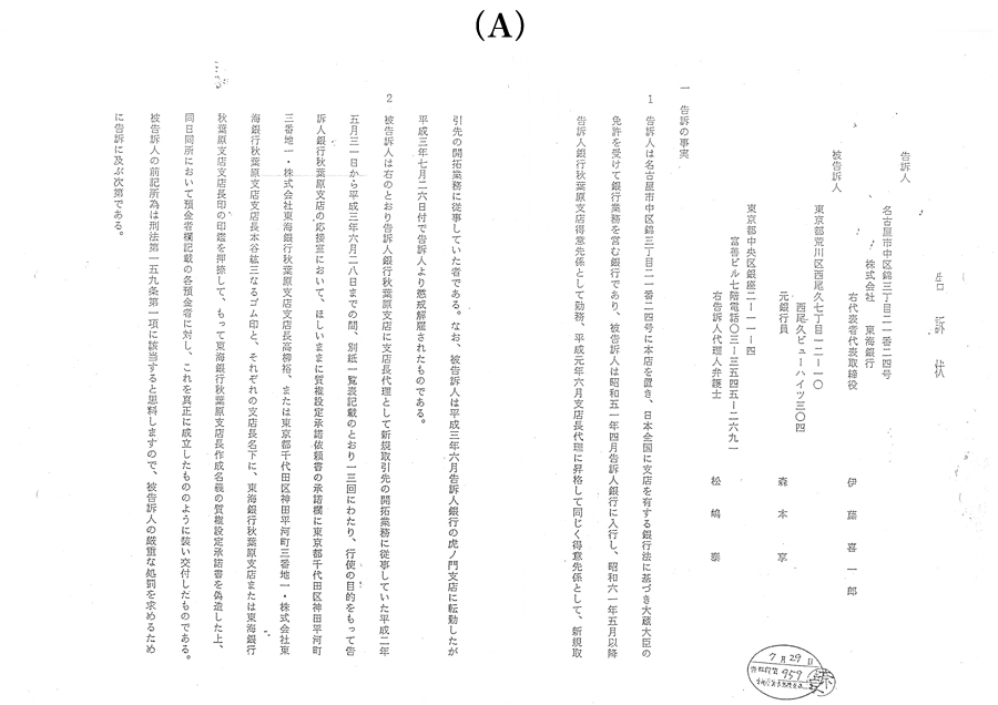 東海銀行は個人の銀行員による流用として告訴したが、何をもって犯罪というのか。犯罪とする以前に受付印を押捺した銀行員が出金すべきではないのである。(後日、この件は東京高裁の記録を用いて詳細に公開質問を行うものである。)