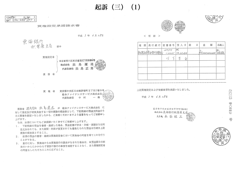 3-2.-(1) 金融機関ではあり得ないマンガチックな質権設定承諾書