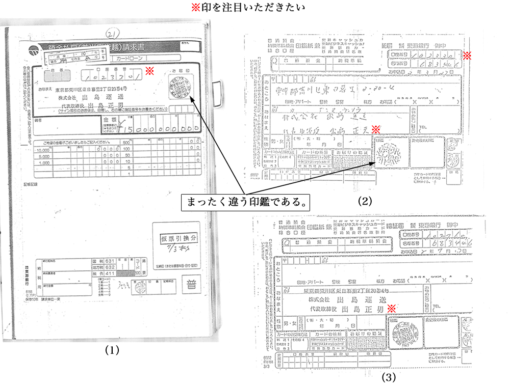 誰が見ても判る「印鑑相違」なのであるが、ここでもう一度(1)を確認していただきたい。