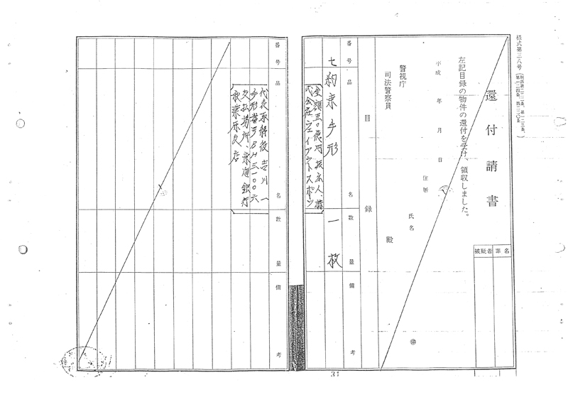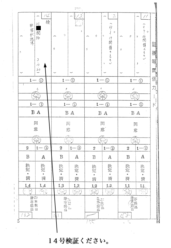 東海銀行との取引関係書類は、書類の偽造が公訴事実として掲げられているにも関わらず、偽造書類の原本を還付している。刑訴法に則せば、本来なら、偽造されているものであるから、還付に際しては「偽造、変造」と記載されなければならないはずなのに、その記載さえないのである。