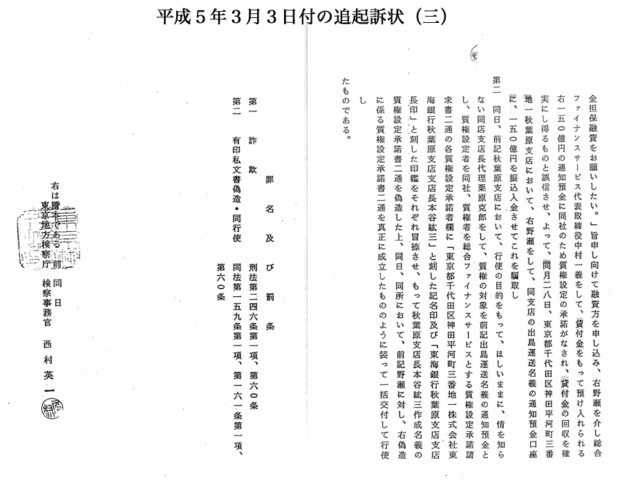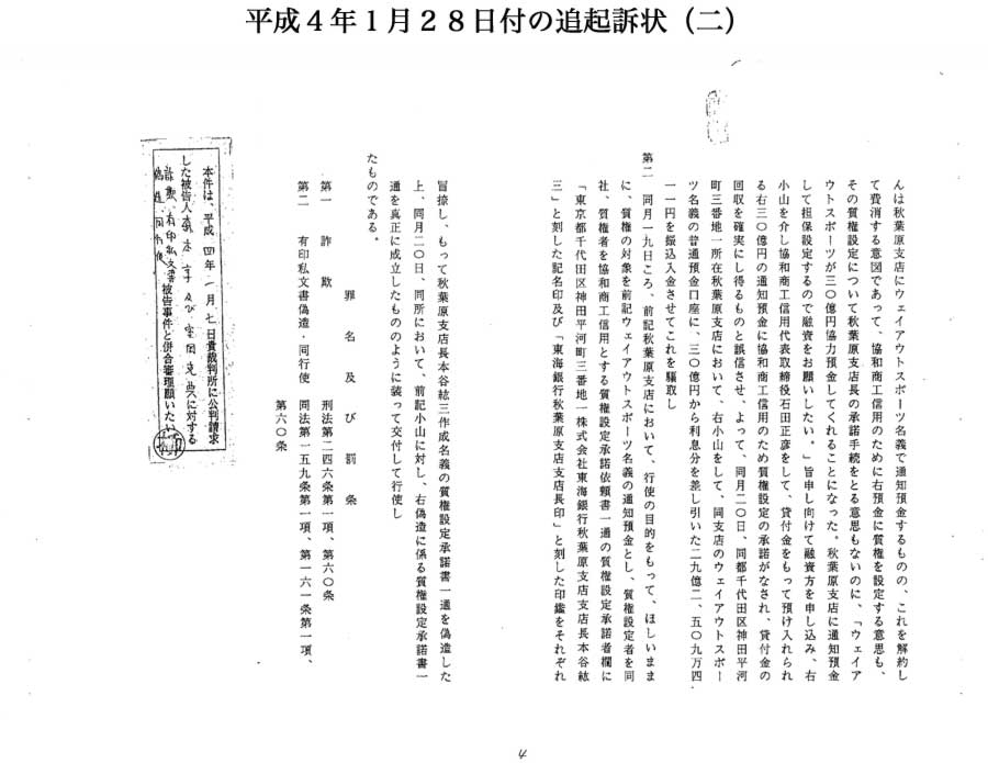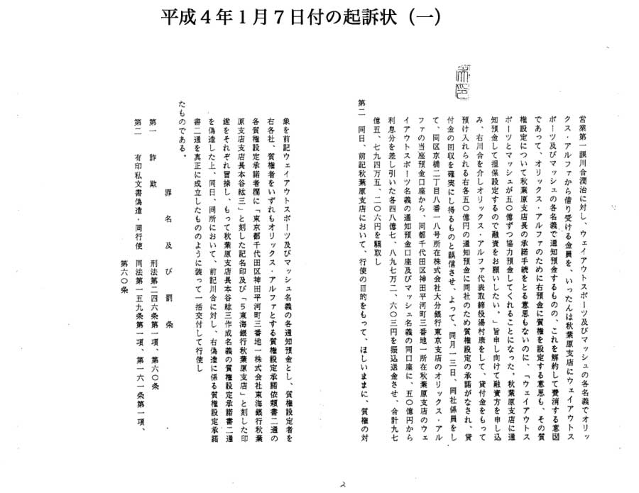 (ア) 平成4年1月7日付起訴状検証下さい。
